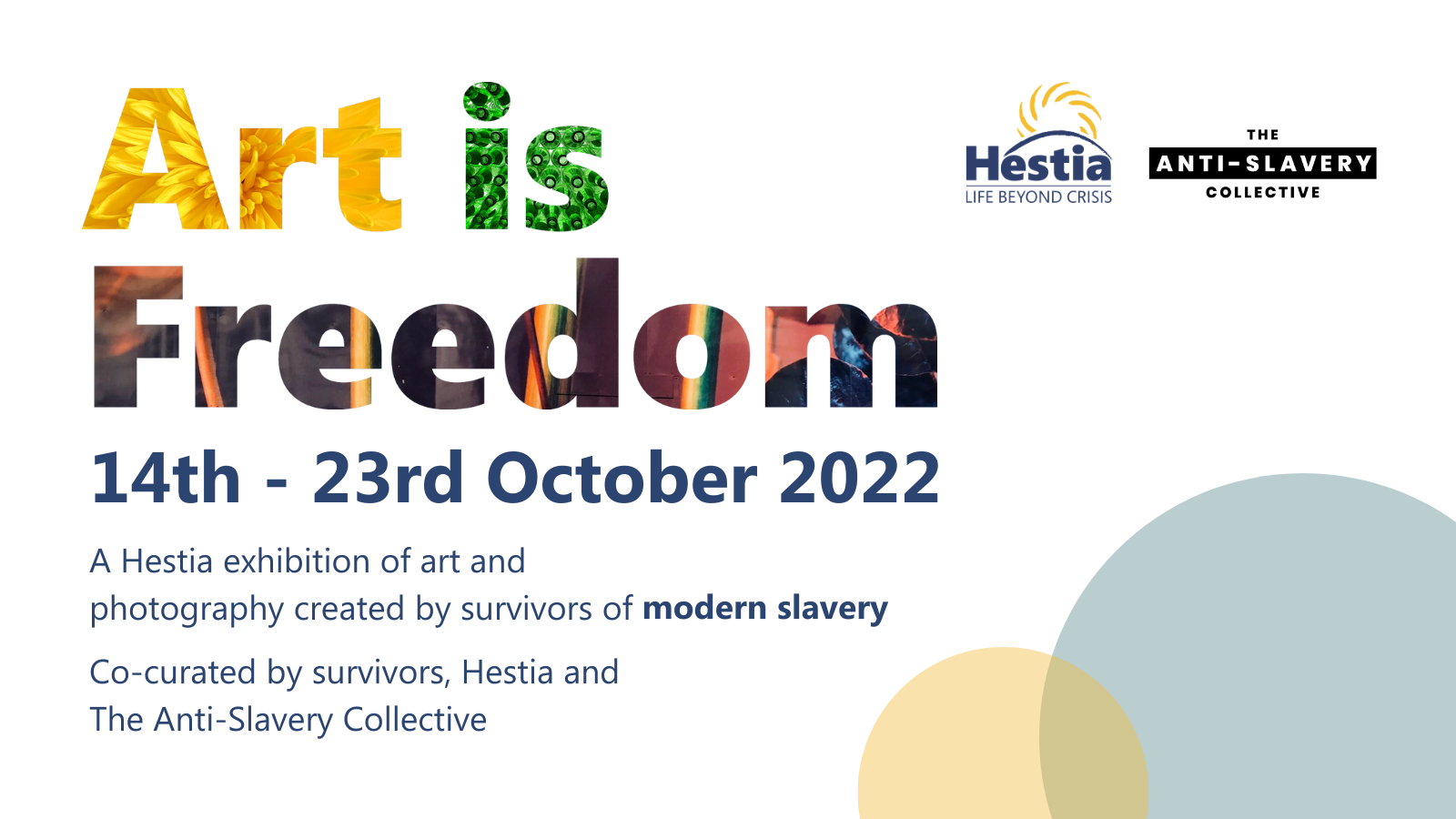 October. For more information, please go to www.Hestia.org/ArtIsFreedom.