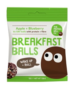 The Protein Ball Co. Apple + Blueberry Breakfast Balls are perfect as a lunchbox snack, high in fibre and protein, they are 100% natural with no added sugar (and no nuts!).
