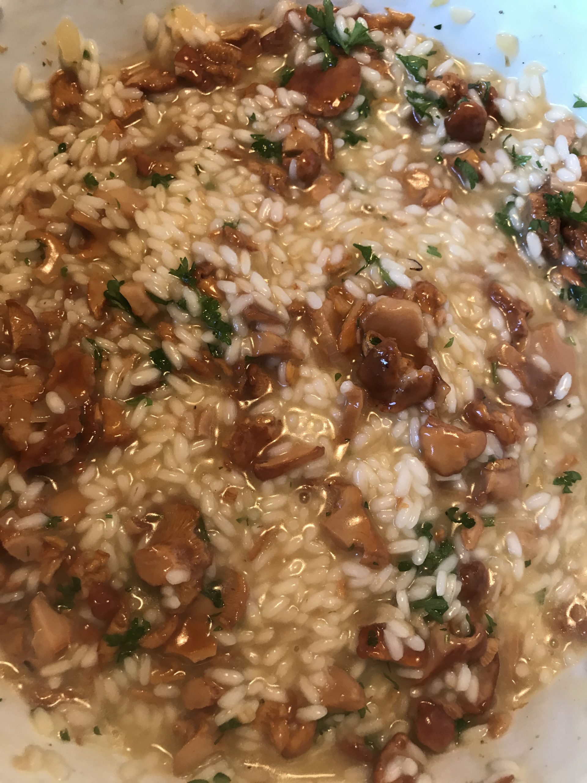 Another very popular one is Mushroom risotto. Porcini mushrooms are a classic but we found Chanterelles which are one of my favourite so, here is what we did: