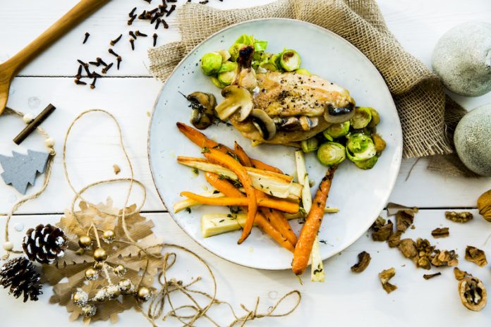 - Place the chicken on two warm plates, spoon over the mushroom sauce and serve alongside the roasted parsnips, carrots and the sautéed sprouts and chestnuts.