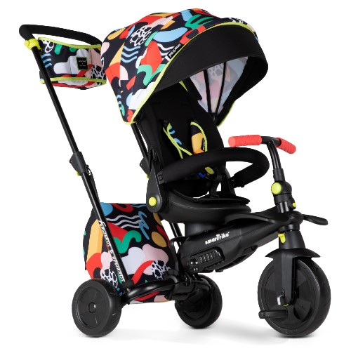 The STR7, smarTrike’s flagship stroller trike, combines a traditional stroller with an independent tricycle, allowing children to enjoy the many benefits of triking, including steering, pedalling and navigating as early as they can sit upright.