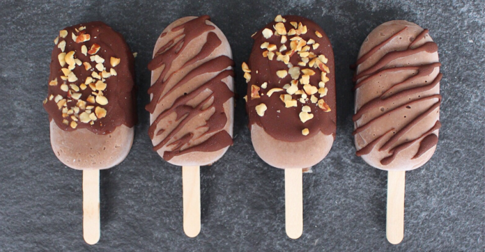 In a food processor, blend the ice cream ingredients together until mixed. Pour into ice cream moulds and leave for a few hours to set.