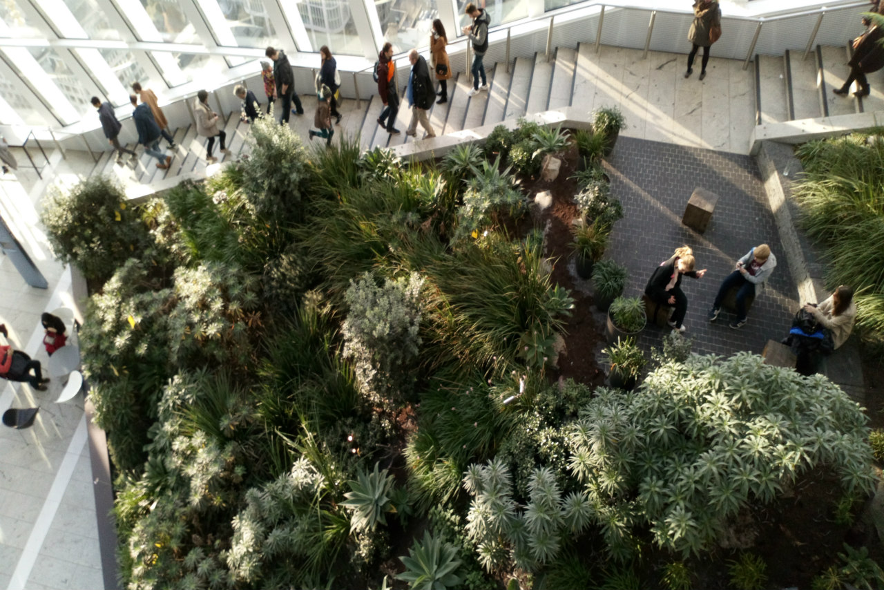 Stepping out of the lift, we entered a massive lobby with tables, chairs and more relaxed sofa-style seats surrounding a bar, food area and the plants. The star attraction – besides the plants, is an outdoor terrace lining one side – the place to head to for views of London’s skyline with plenty of photo opportunities – note that selfie sticks are (thankfully) banned! It was pretty much heaving while we were there but such is the layout – both inside and on the expansive outdoor terrace, that it never felt crowded. You can wander freely all the way around the 35th floor and the kids loved going full circle several times, before heading up the stairs – positioned at both sides of the ‘lobby’, to the next level for some more viewing time. The stairs are lined with plants and there are platforms you can wander across so you can really immerse yourself in all the greenery.