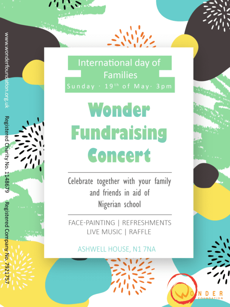 The Wonder Foundation is hosting a fundraising concert on Sunday, May 19 from 3 PM – 5 PM at Ashwell House in London (N1 7NA) to raise funds for Wavecrest College of Hospitality in Nigeria.