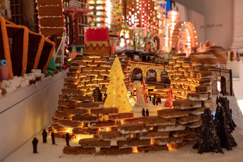 It is a stunning edible “future city” of over 60 buildings made of gingerbread, using chocolate, gummies and a whole bunch of sweets to assist in this architectural feast of city planning.