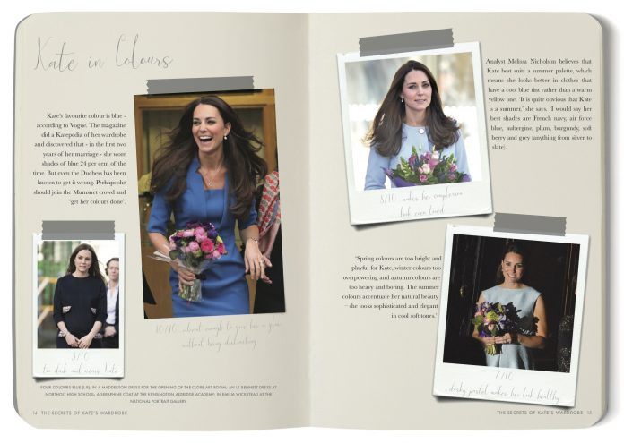 “In the early stages of her pregnancies with Prince George, now four, and Charlotte, two, Kate, who kept her model figure, tended to favour bespoke creations by designers such as Emilia Wickstead over maternity wear. But as her pregnancy moved on, she turned to designer such as Madderson and Seraphine. You can see how lovely she looked in a spread from my book ‘Kate in Colours’.