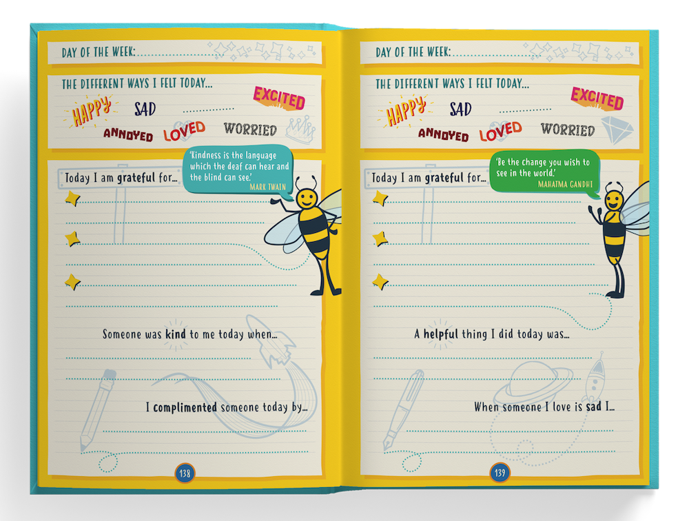 When our journal arrived, my 8 year old picked it up straight away! And got stuck into it. The instructions on how to use it and complete it are simple and fun, my daughter didn’t need any help from me. It gives a child the feeling of control and independence. It’s an activity they chose to complete by themselves and makes them feel confident and powerful.