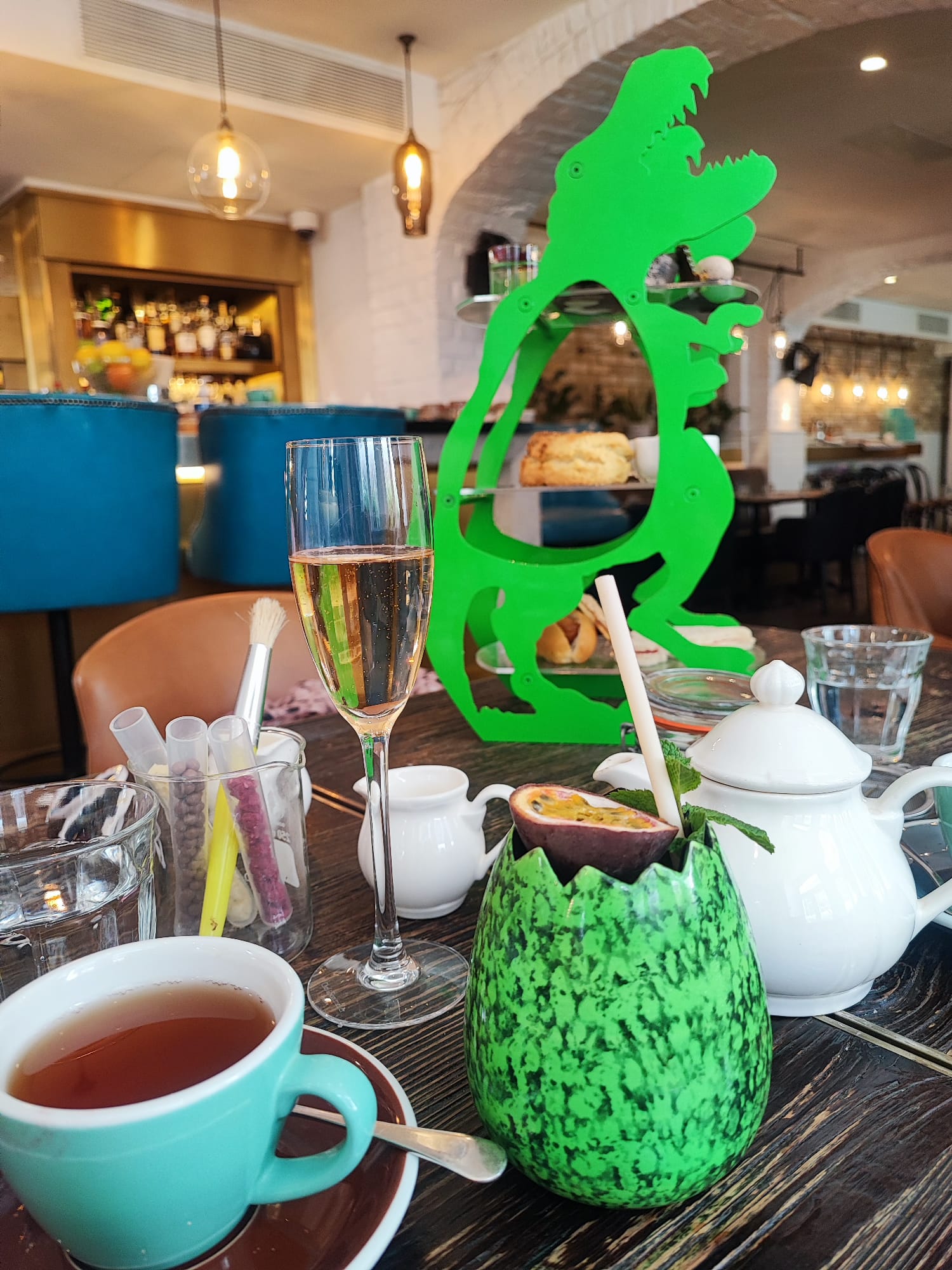 Whilst children enjoy their accompanying hot chocolate, adults can sit back and indulge in a more grown-up offering comprising the choice of either a glass of Charles Heidsieck Brut NV or rosé Champagne, a glass of alcohol-free Wild Idol sparkling rosé or one of a selection of specially created cocktails including a Dino Sour (gin, white wine syrup, lemon juice, FAIR passion fruit liqueur, pineapple juice & Angostura bitters) and a T-Rex Mex (hibiscus-infused tequila, red wine syrup, pineapple juice, lemon juice & basil).