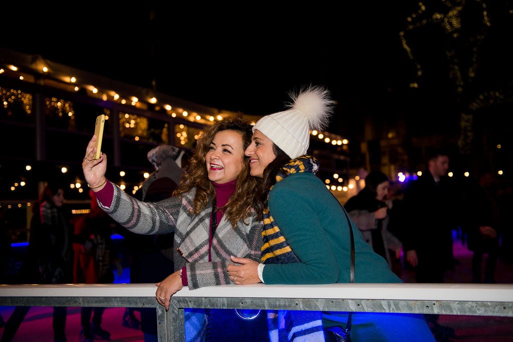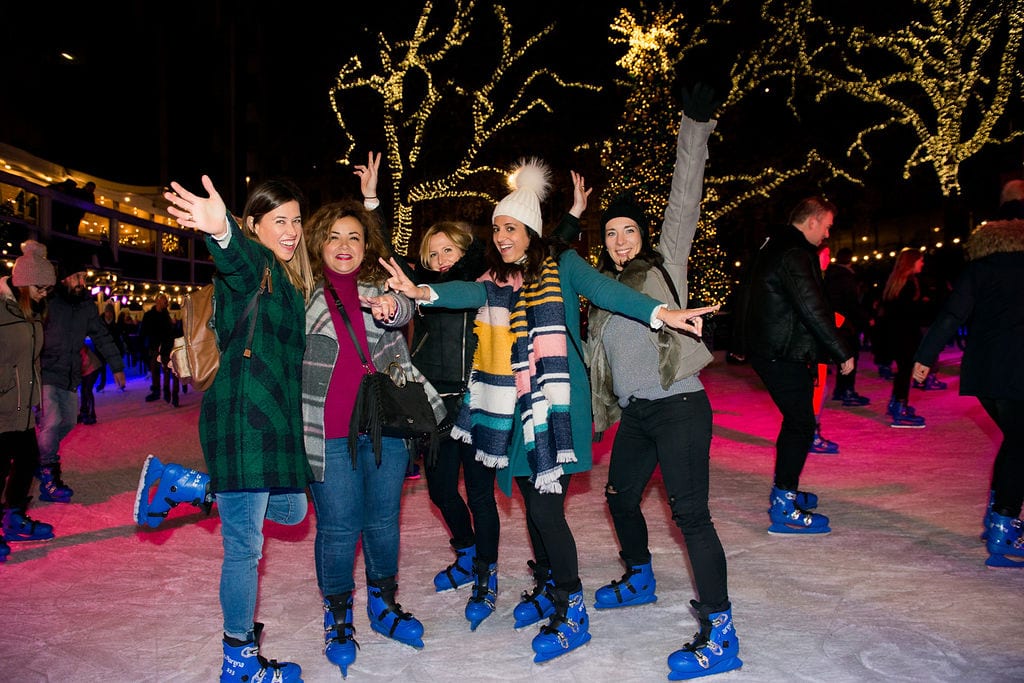 We were booked for a Friday night at 7pm  skate session and got there for 6.30pm to queue for our skates. We got our skates and hats on and put our bags in the cloakroom (which you have to pay £1 for). One of the team members is expecting so she joined us afterwards. Located in the heart of South Kensington, the experience was mesmerising with sparkly lights at every corner.  The set up like every year is beautiful with a Christmas tree right in the middle of the ice rink. It was nice to be out, without the kids to just have fun.