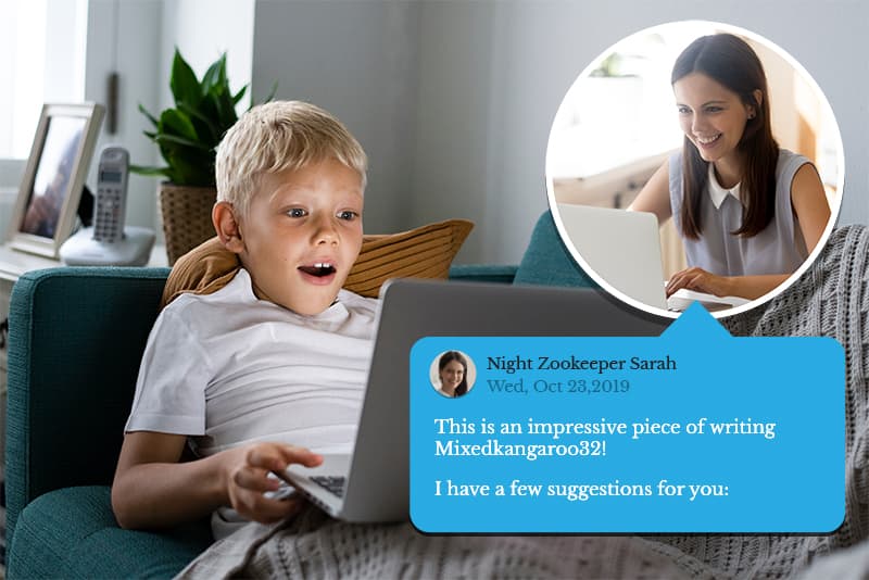 Night Zookeeper’s team of tutors provide feedback on all the writing that children produce. This may be simply identifying spelling and punctuation mistakes, asking follow up questions, or showing other ways that they could improve their writing. The tutors always provide positive encouragement.