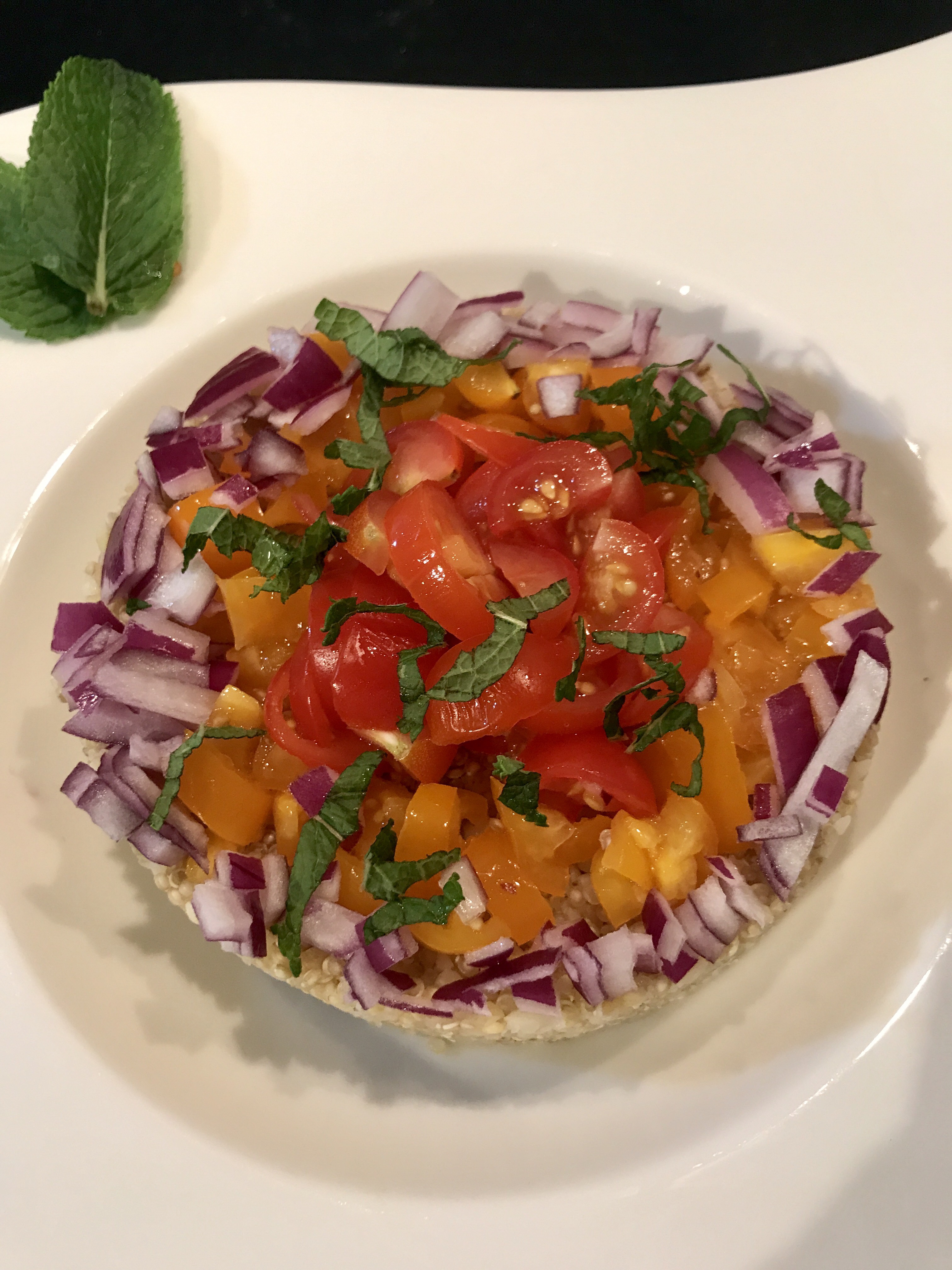 3. In the meantime, chop the pepper, the red onion, the tomatoes and the garlic in dices.