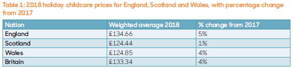 Holiday childcare costs have risen by four per cent in Britain since last summer, bringing the average parents now pay for one week of holiday childcare to £133. The Family and Childcare Trust’s 17th annual Holiday Childcare Survey finds that the summer holiday comes with an average price tag of £800 for six weeks of holiday childcare per child.