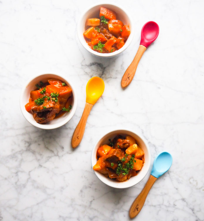 This delicious slow cooked beef stew takes a few minutes to prep; once