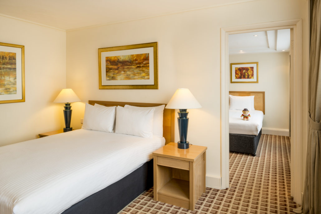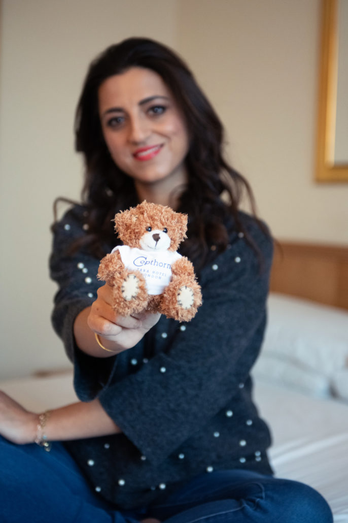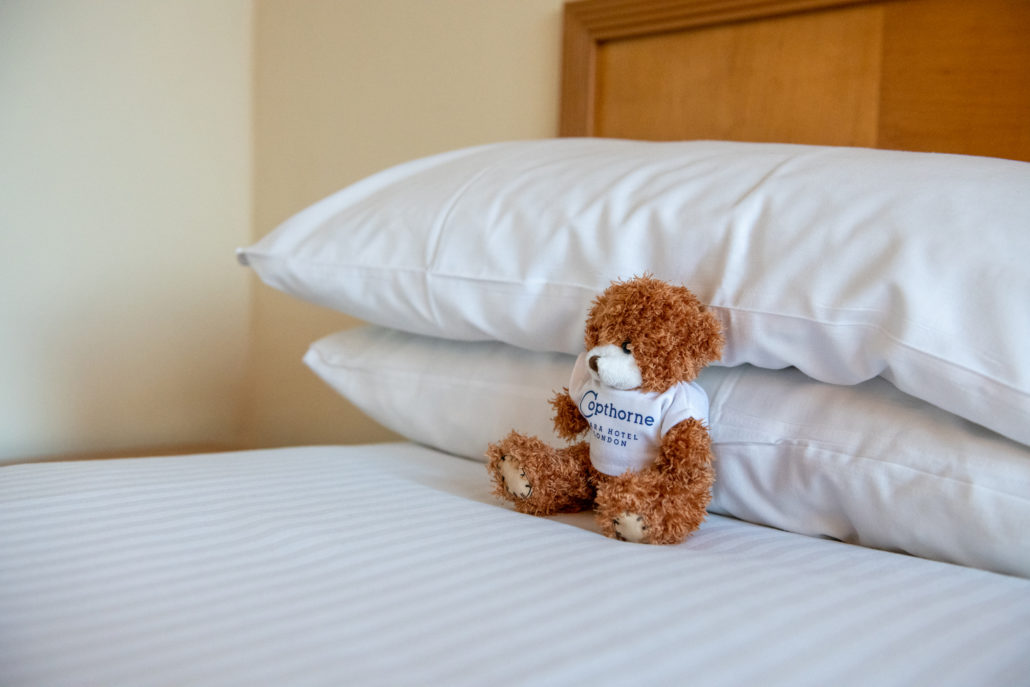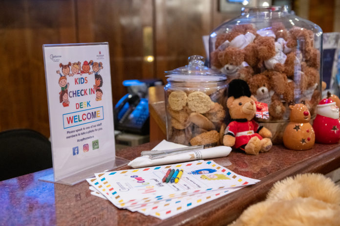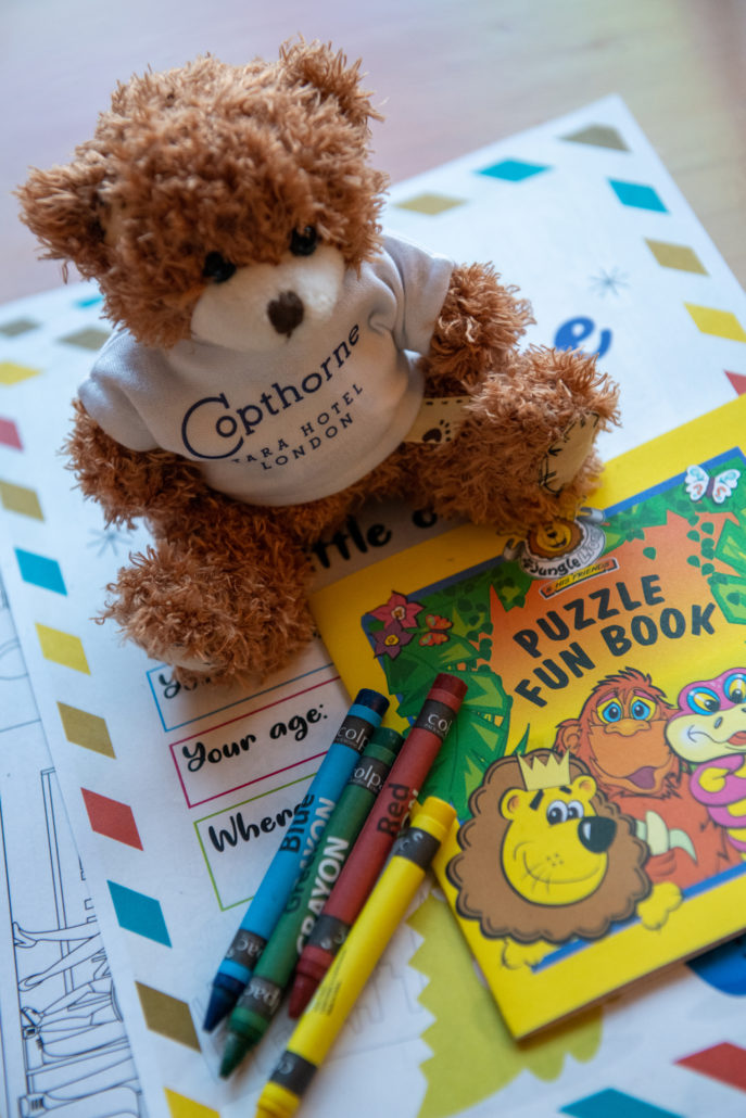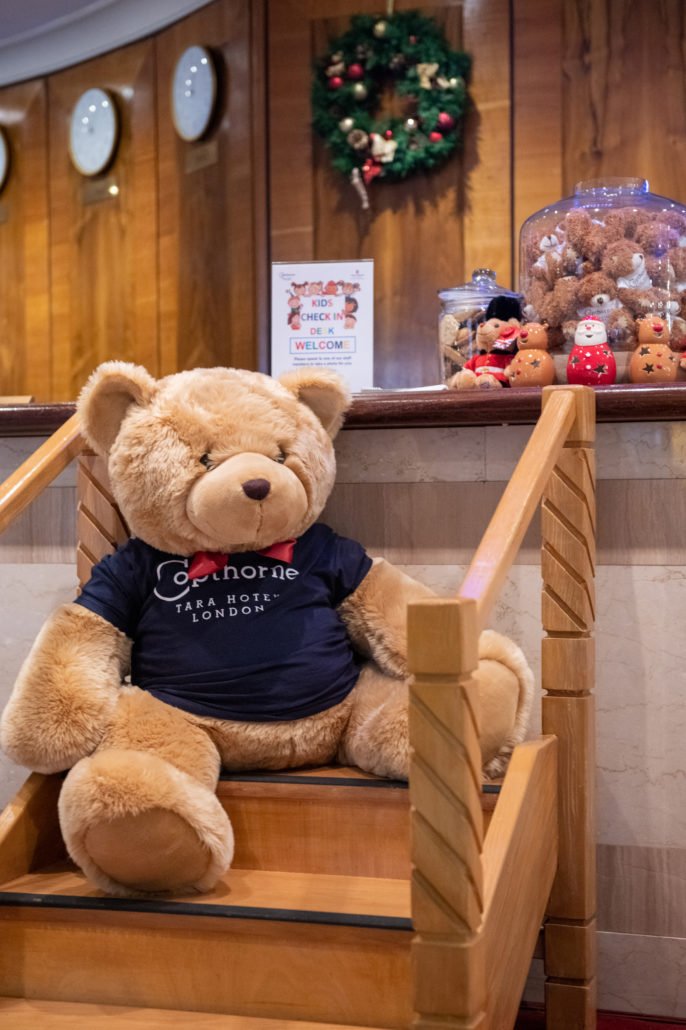 The Copthorne Tara Hotel is home to 833 bedrooms, including 7 suites and 5 family suites. The hotel offers a seamless blend of personalized service with unrivaled comfort. The hotel is located steps away from the buzzing streets of Kensington High Street and nearby the iconic Royal Albert Hall, and local Kensington Museums including Natural history museum, science museum and Victoria and Albert Museum. The location is greatly situated for families visiting London as its only steps away from, shopping, bus stops and the TFL Underground station. We were delighted to have a staycation here during the festive period in London. The check in was super cute with kids, as they have a special corner for kids to check in with cookies and colouring pens ready. The huge teddy bear was so adorable that we couldn’t resist but to take a picture with. The staff were super friendly and we quickly got us up to our room.