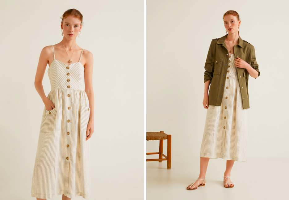 This dress is slightly more expensive for H&M but I actually own it and cost per wear it owes me nothing. I’ve been wearing it on repeat, perfect with some sandals and then throw on a blue denim jacket if you need to keep warm. I’ts also a good dress for throwing on for the school run or for those that don’t like to expose their arms and shoulders.