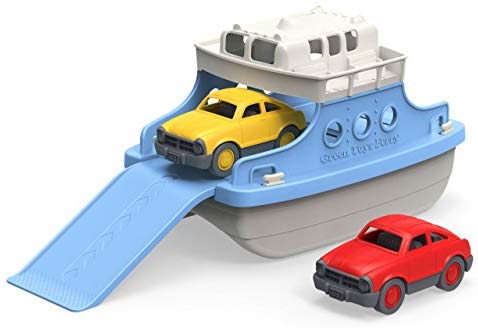 Made from 100% curbside collected recycled plastic, the Green Toys Ferry Boat with Cars, features 2 colourful cars, a spacious cargo area area and slide-our ramp.