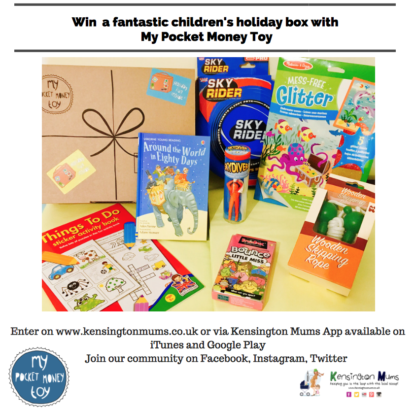 To celebrate the start of the summer holidays, My Pocket Money Toy are offering the chance to win a fabulous Holiday Box packed with a mix of outdoor toys, craft activities, games and books to keep children entertained in the holidays, or even in a long journey!  Summer boxes are tailored for 3 to 5, 6 to 7 and 8 to 10 years age groups.’